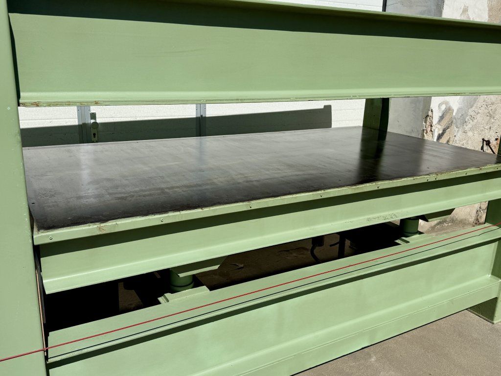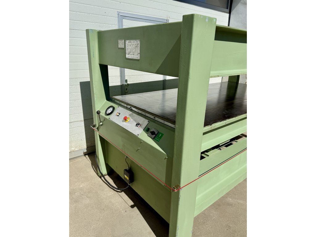 Technická data:-lisovací rozměr 2500x1300mm-max rozěvření ploten 400mm-max tlak 80TUN-jmenovutý tlak 2,5kg/1cm2-ocelové lisovací plotny 10mm-lisování za studena -hmotnost lisu 2500kg-záruka na skryté vady 6 měsíců