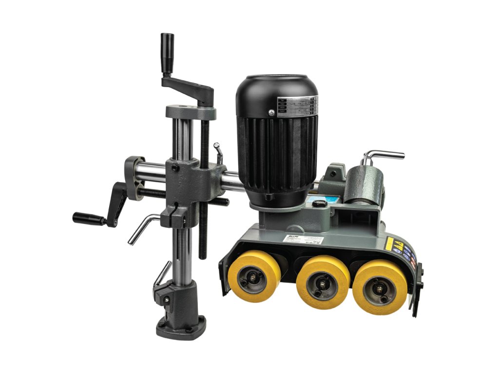 Střední kategorie podavače materiálu se třemi odpruženými rolnami, které mají výbornou přilnavost a skvěle se vyrovnávají s nerovnostmi. Je ideální pro konstantní posuv při frézování nebo řezání dřeva i jiných materiálů. Volit můžete ze čtyř rychlostí podávání, které se mění pozicí ozubených kol po sejmutí krytu. Zpětný chod se ovládá ručním ovladačem. Vodorovná i svislá poloha podavače se nastavuje na universálním stojanu pomocí dvou ovládacích šroubů a poté se bezpečně zajistí. Hlavu podavače lze otáčet o 90°, takže jej lze použít k vodorovnému nebo svislému tlaku na materiál. Může být namontován přímo ke stroji šrouby (nutno vrtat díry do stolu) nebo pomocí IGM Instalační desky pro podavače. Pro použití na malé a střední frézce nebo srovnávačce či kotoučové pile pro středně-lehké práce například frézování rámečků a výplní. Je vyroben ze stejných materiálů jako vyšší modely, což zaručuje dobrý poměr cena - výkon.