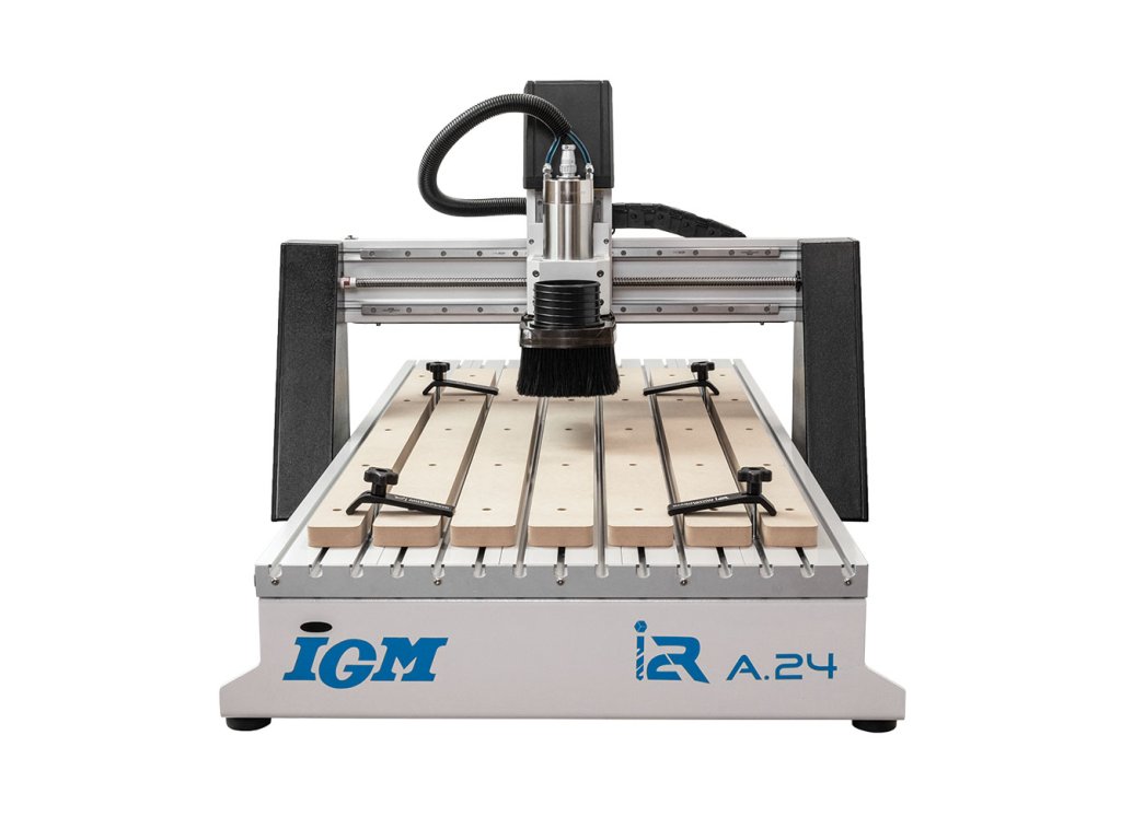 CNC frézka IGM i2R řady A je schopna obrábět všechny materiály na bázi dřeva, většinu plastů, pěny a polystyreny, mosaz i hliník. Stroj je vhodný pro vyřezávání 2D nábytkových dílců, výrobu intarzií, 3D modelů, plastik, vzorkových výrobků a prototypů nebo pro popisování a značení.