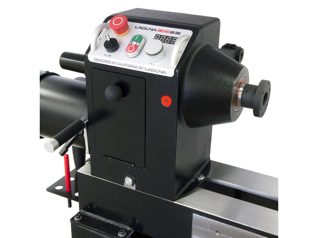 Masivní lože soustruhu široké úctyhodných 208 mm je vyrobeno z kvalitní oceli a je přesně vybroušeno, což zajišťuje hladký posun vřeteníku, koníku i podpěrky. Vřeteno je poháněno výkonným 1,5 kW indukčním motorem s variabilním frekvenčním měničem VFD, takže i při nízkých otáčkách získáte neuvěřitelně velký točivý moment. Otáčky se ovládají plynule otočným duralovým ovladačem a změna mezi dvěma stupni otáček je řešena jednoduchým pákovým mechanismem.