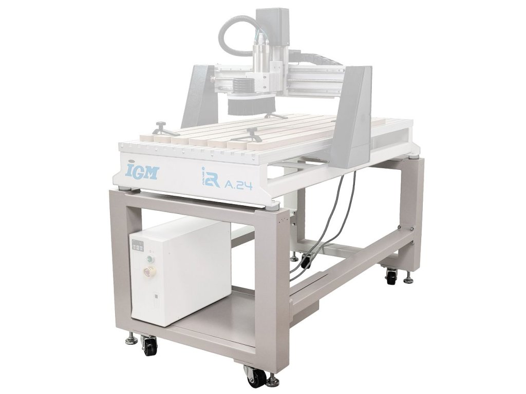IGM Podstavec pro CNC frézku A24 poskytuje pevnost a stabilitu, která je při CNC frézování klíčová. Se strojem se můžete volně pohybovat po dílně díky pojízdným kolečkům, a pak ho přesně vyrovnat a zafixovat pomocí stavěcích nožiček.