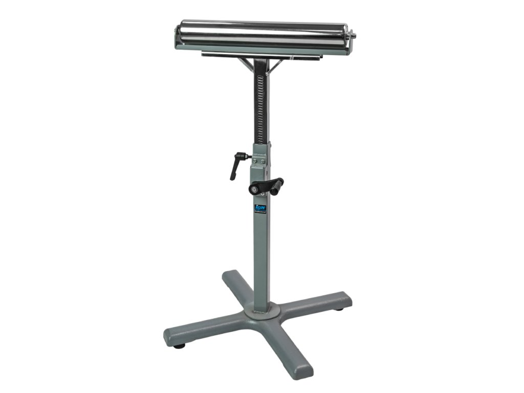IGM Válečkový podpěrný stojan s rolnou se odlišuje od ostatních a to tím, že výšku rolny nastavujete pohodlně pomocí kliky. Tento zvedací systém funguje pomocí ozubeného kola a pastorku, který umožňuje snadné a přesné nastavení výšky. Stojan je ideální při srovnávání a tloušťkováni desek, a to díky rychlé a snadné změně výšky stojanu po přenastavení stroje. Podpěrný stojan je možné využít při broušení válcovou bruskou a u podobných strojů, kde je třeba podepřít materiál po vyjetí ze stroje. Dvě pojistné páky výsuvného ramene zabraňují sesunutí rolny z nastavené výšky. Rolna má průměr 55 mm, délku 400 mm a je osazena kuličkovými ložisky pro plynulé otáčení. Čtyřramenný litinový podstavec má plastové a výškově nastavitelné nožky, které umožňují přizpůsobení na nerovné podlaze. Výšku rolny můžete libovolně nastavit v rozmezí 660 mm až 1060 mm.