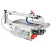 Robustní lupínková pila JET JSS-354VM pro přesné řezy bez vibrací. Pila je vybavena bezpečnostním plastovým štítem a ofukem pro čistotu pracovní plochy. Pilové listy s čepem i bez čepu jsou uchyceny jednoduchým rychloupínacím mechanismem. Napnutí plátku lze upravit mikro nastavením na zadní straně pily. Rameno pily je vybavena svorkou pro stlačení obrobku při práci. Stůl se naklání 45° doleva a 10° doprava.
