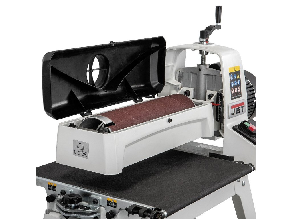 Představujeme zcela nově navrženou válcovou brusku JET JWDS. Silný motor nabízí více než dost výkonu na zvládnutí jakéhokoliv broušení. Inovativní systém nastavení rovinnosti stolu vůči brusnému válci umožňuje jednoduchou úpravnu sklonu podle typu broušení a požadavku na finální výsledek. Naklonění stolu jednoduše nastavíte pootočením kola. Regulace pro plynulou změnu rychlosti posuvu umožňuje zvolení optimální rychlosti pro ideální výsledek, zatímco technologie Sandsmart™ průběžně monitoruje zatížení stroje a zabraňuje tak přetížení motorů. Přesná konstrukce odsávacího krytu, která kopíruje tvar válce, zefektivňuje odsávání a zabraňuje pilinám a prachu dostat se zpět mezi obrobek a válec. JET JWDS Válcová bruska je vše, co potřebujete pro bezstarostné vybroušení povrchu.
