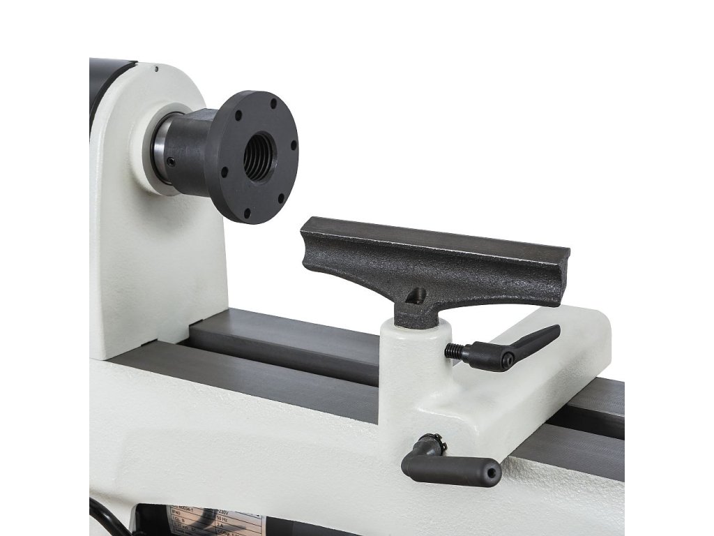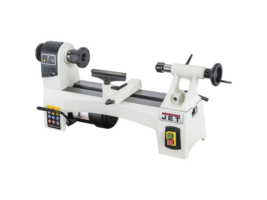 JET JWL-1015 je kompaktní revoluční malý soustruh na dřevo nové generace plný unikátních konstrukčních řešení, která usnadní a zpříjemní práci a obsluhu stroje. Celý soustruh byl navržen tak, abyste měli při soustružení vždy a vše pod kontrolou. Je vyroben z litiny s ložem širokým 13 cm zajišťujícím vysokou stabilitu, minimální vibrace a mnohem lepší podporu při soustružení. Celková hmotnost se zvýšila o 3 kg proti předchozímu modelu. Vřeteno je uloženo v masivních ložiscích a je přes řemen poháněno dostatečně silným motorem. Změnou pozice řemene lze změnit otáčky na 400, 700, 1000, 1500, 2200 a 3300 ot/min. Změna je rychlá a snadná díky pákovému systému uvolnění řemene a rychloodemykacímu krytu řemenice. Všechny ovládací prvky jsou kovové.Vřeteno lze indexovat po 15° pomocí blokovacího mechanismu. Je to bezpochyby nejlepší mini soustruh ideální pro profesionální i amatérskou výrobu malých soustružených obrobků, jako jsou nábytkové doplňky, šperky, talířky, misky apod.