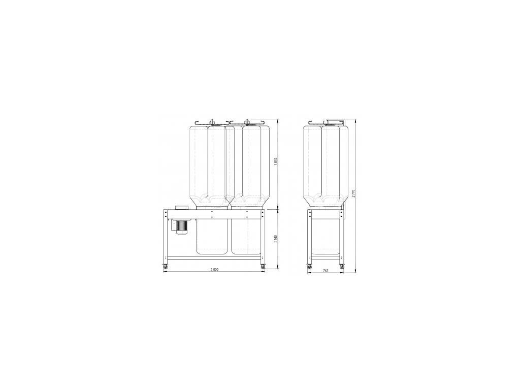 - Stroj je vybaven antistatickými textilními odpadními vaky s poutky pro snadnější manipulaci, které lze použít opakovaně.